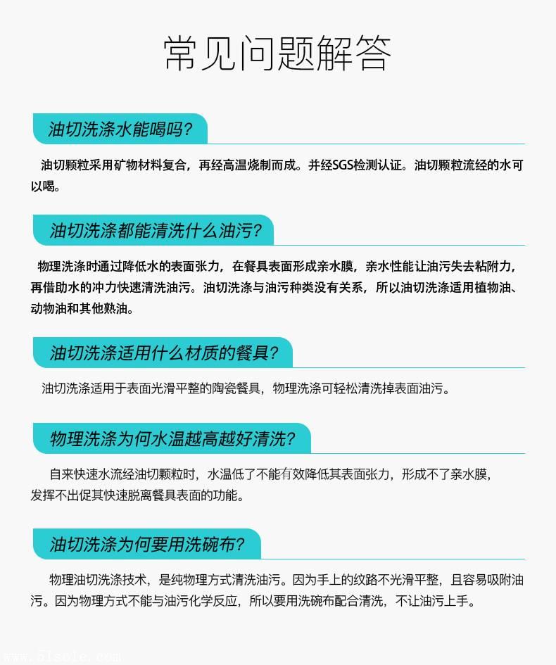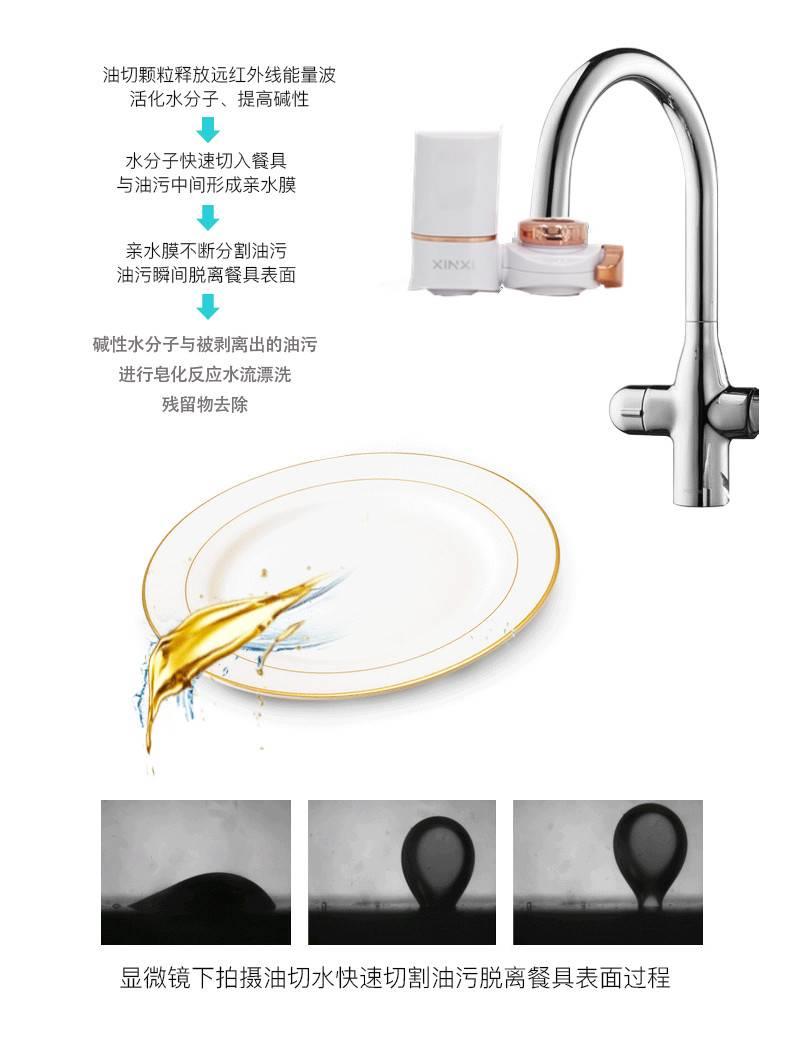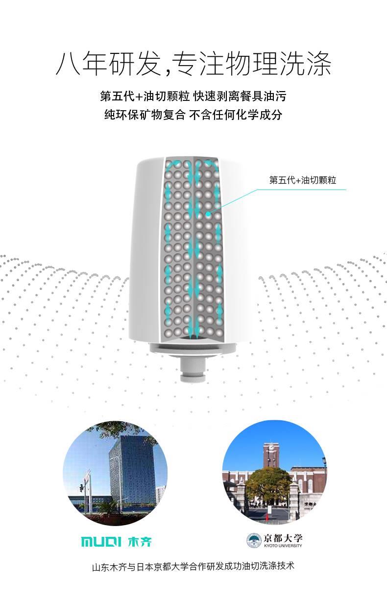 山东木齐开发的*新物理洗涤“油切技术”是多种机能矿物材料的复合材料,并在高温下烧制。运用矿物质的远红外线等自由能波快速下降水的表面张力,在餐具表面形成超亲水膜,实现餐具油渍的快速剥离。同时,PH值可以很快加水使油脂皂化,然后用水显影以将残余的污垢从餐具表面全然分开出来,从而达到轻松清洁油脂的效果。木齐油切颗粒现在早就发展到3+代自由能超亲水技术材料,该材料已取得SGS测试认证并成立了公司规格。